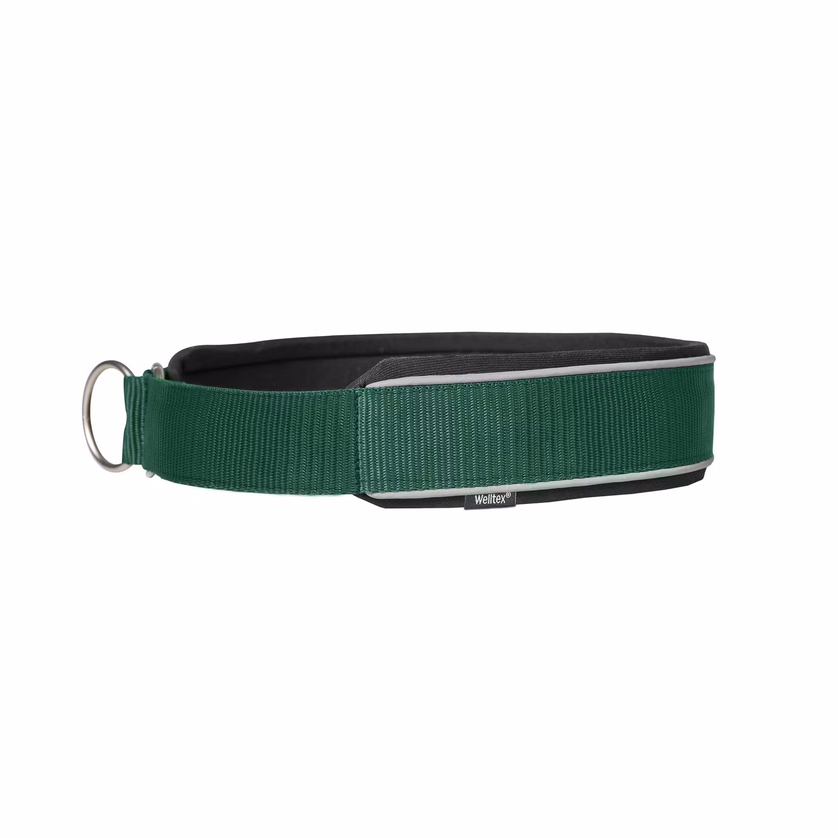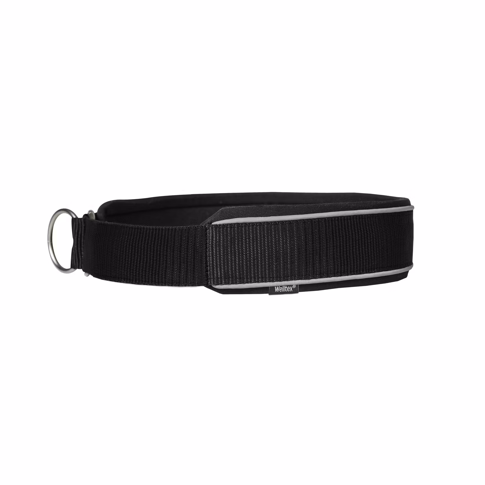 Klassiskt, stilrent hundhalsband i halvstryp-modell. Reflexband längs kanten ger en synlighet och säkerhet vid promenader. Halsbandet har en mjuk foam-fyllning och är fodrat med Welltex®-teknologi (FIR) för att reflektera kroppsvärmen. På så vis kan halsbandet bidra till att hålla hundens nacke varm och flexibel vid alla tillfällen.