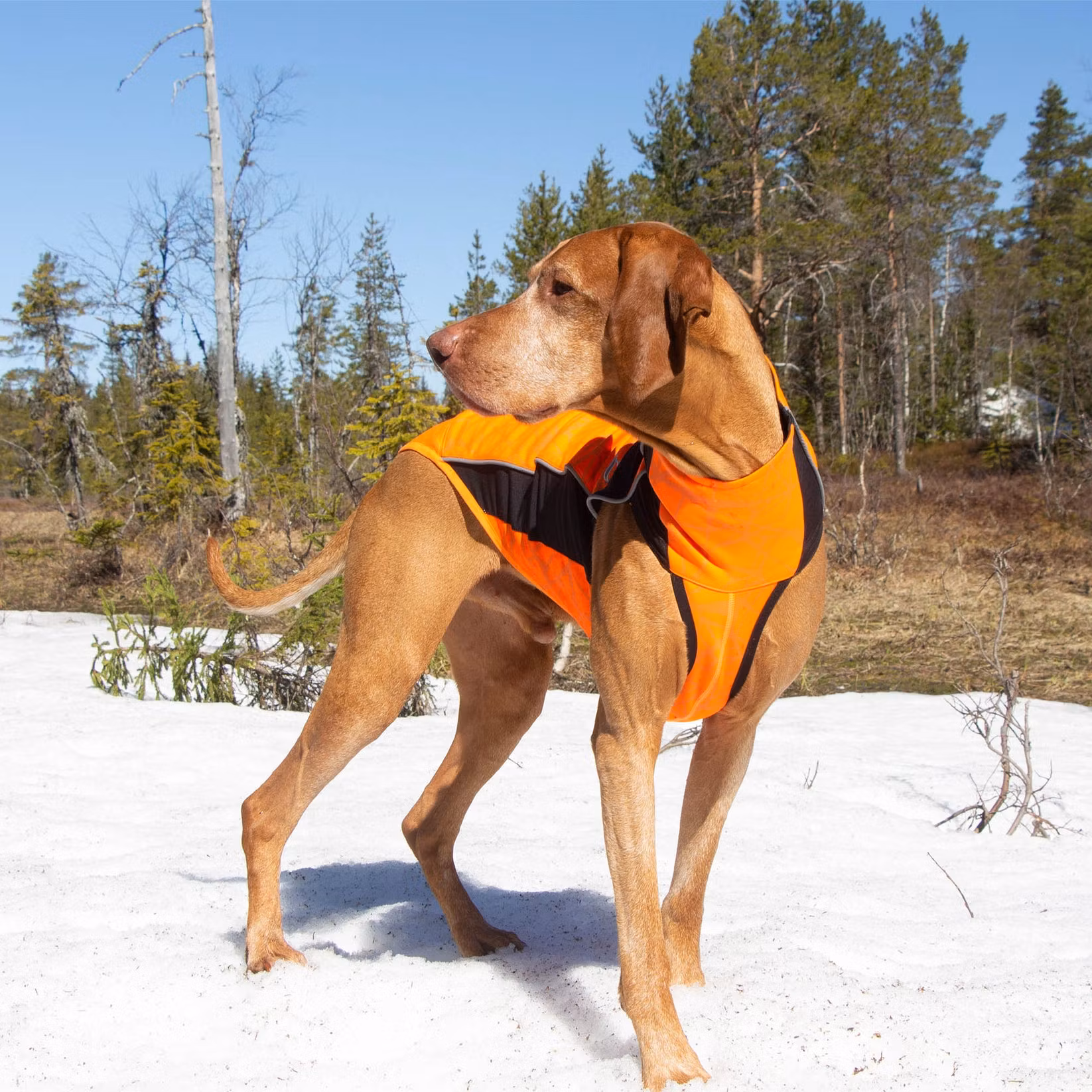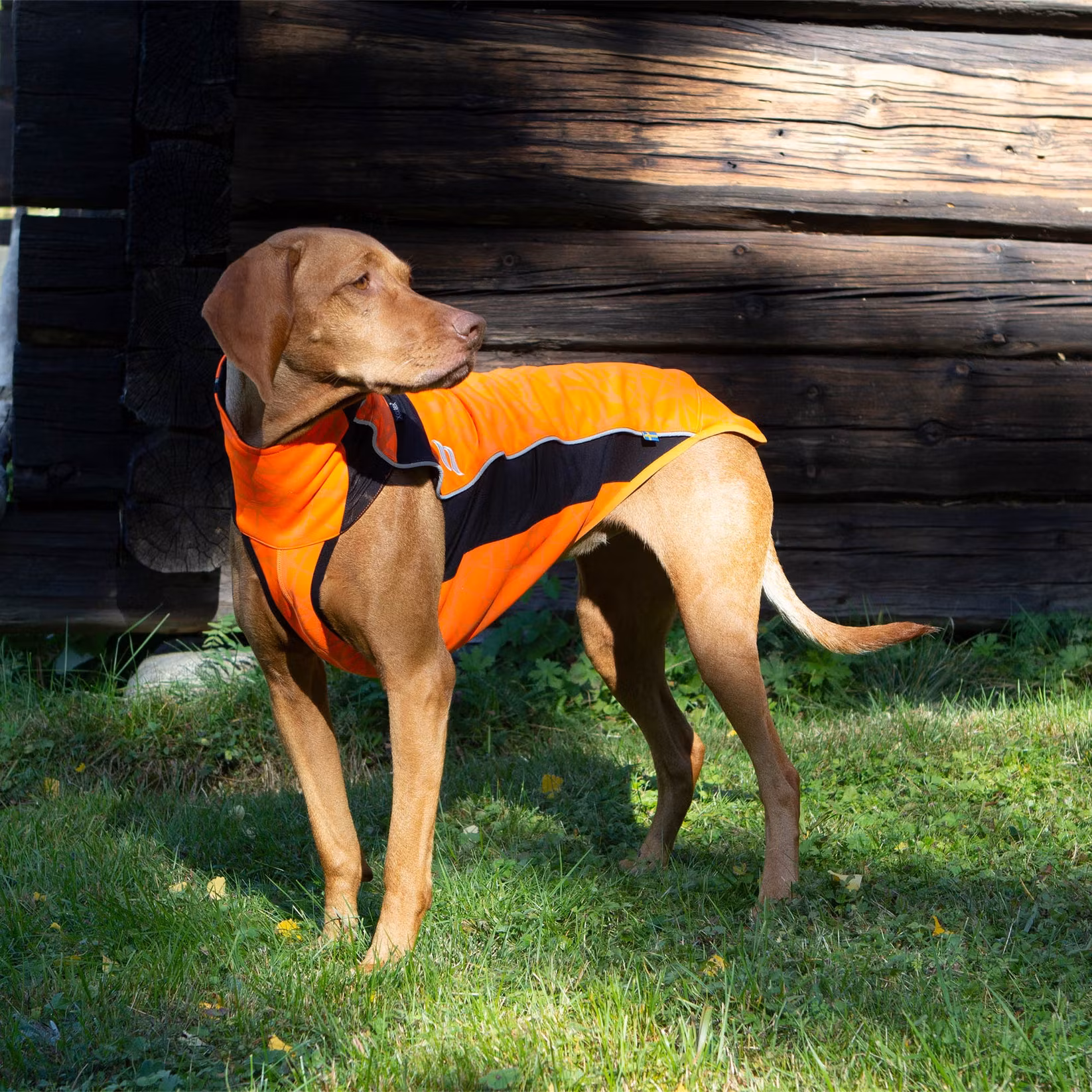 "Eddie" har ett reflekterande mönster och reflexdetaljer för extra god synlighet, perfekt när hunden är lös under arbete, eller vid löprundan/promenaden på kvällen. Ett stretchigt ytskikt och Iontex®-laminerat foder skyddar hunden vid lättare nederbörd.