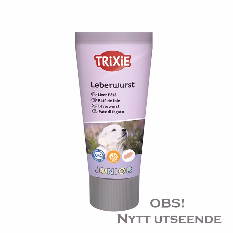 Välj Junior Leverpaté – ett funktionellt och smakrikt hundsnacks som kombinerar näring, belöning och praktisk användning i ett.