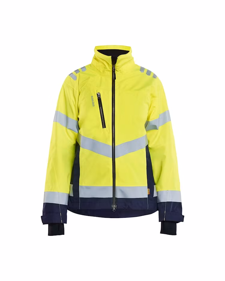 Slitstark skaljacka i varsel från Blåkläder med dampassform och tvåvägslås, tejpade sömmar och vind- och vattentätt ytmaterial som skyddar dig från vind, väta och yttre slitage. Jackan har ett tunnare meshfoder och dolda dragkedjor bak på rygg som ger extra ventilation vid behov. Kan kompletteras med huva i varseltyg med tryckknappar (modell, 2166 meshfodrad, 2165 lättfodrad eller 2175 hjälmanpassad). Finns även som herrmodell 4760.