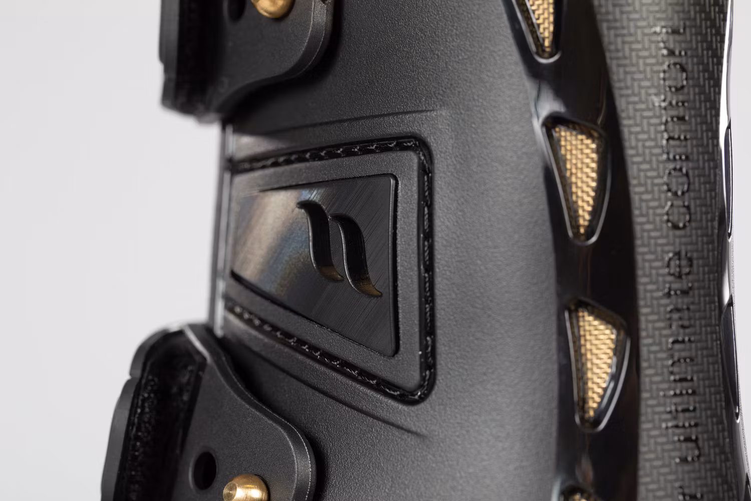 Skydden spänns med kardborreband för en individuell passform. Två solida remmar, utan elasticitet, fördelar trycket och förhindrar att de spänns för hårt kring hästens ben.