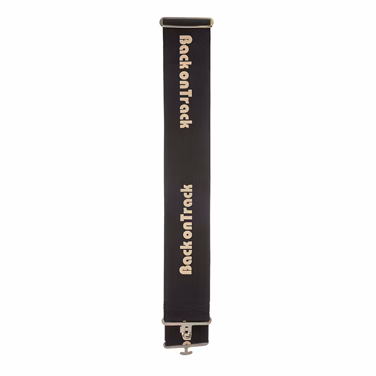 Justerbar längd med hjälp av ett metallspänne. Knäpps med ett smidigt T-barspänne.