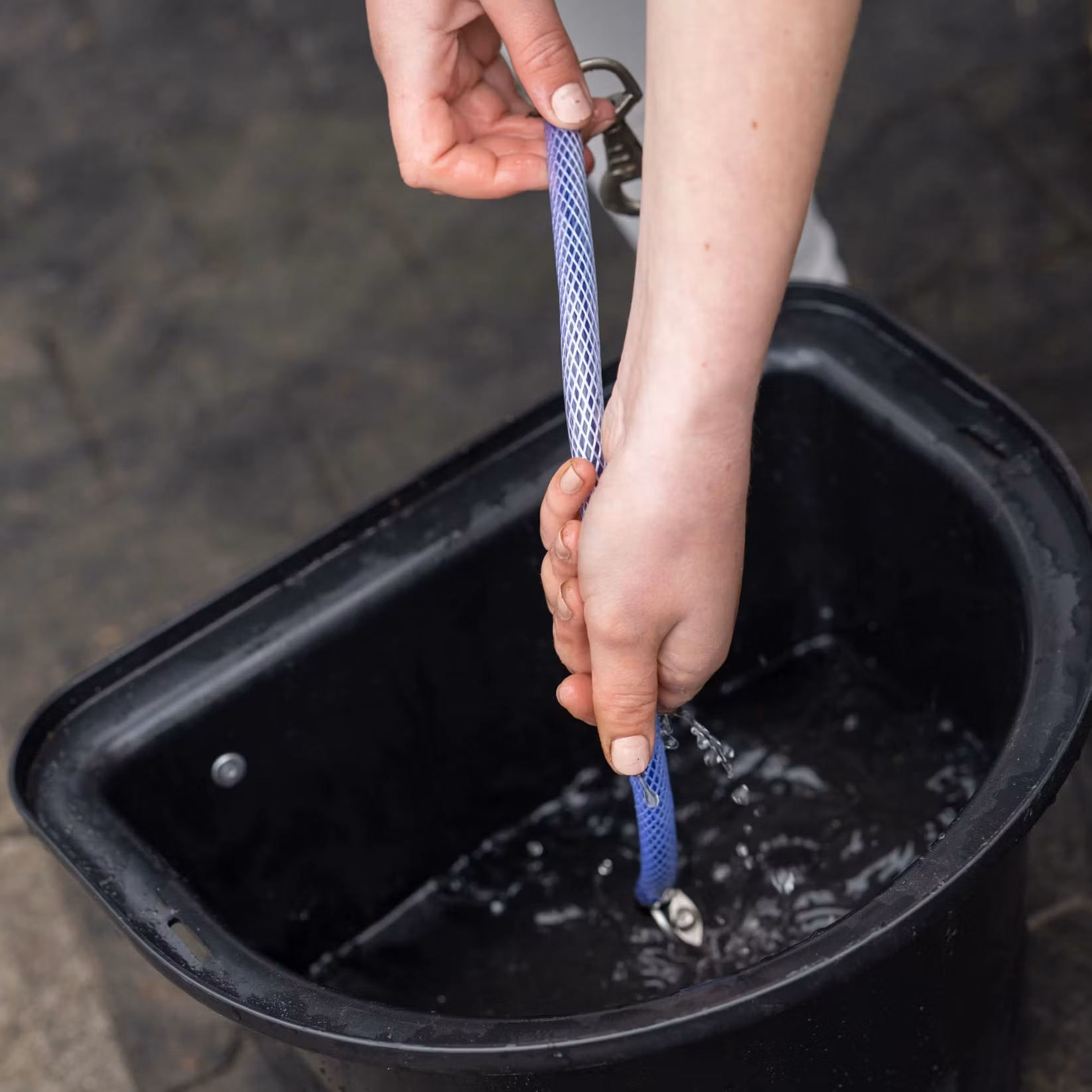 Den smarta konstruktionen med ett slitstarkt polypropylenband, skyddat av ett PVC-rör, hjälper till att hålla smuts borta och gör rengöringen enkel. Perfekt för daglig användning i stallet där både funktion och hygien är viktigt.