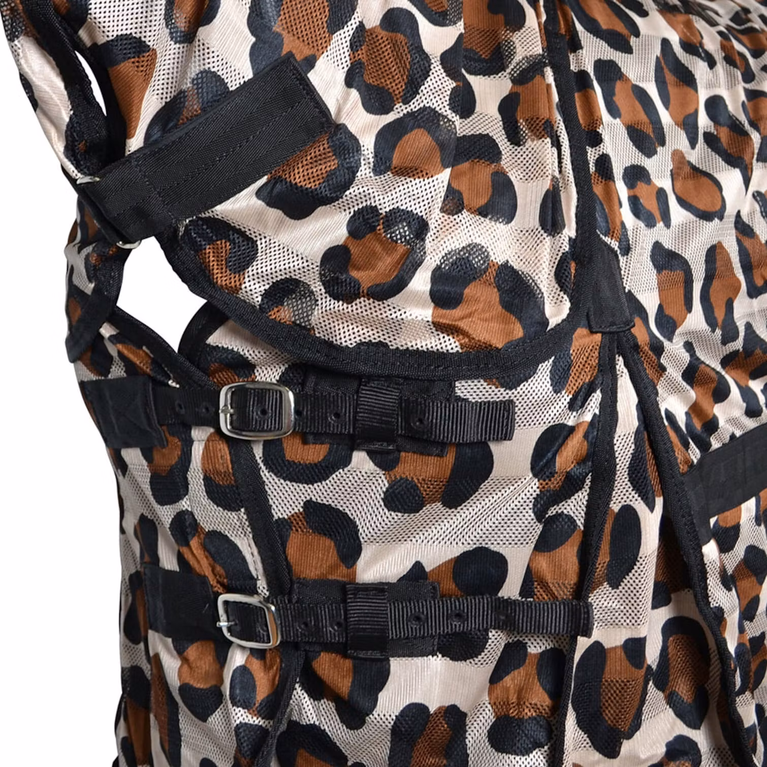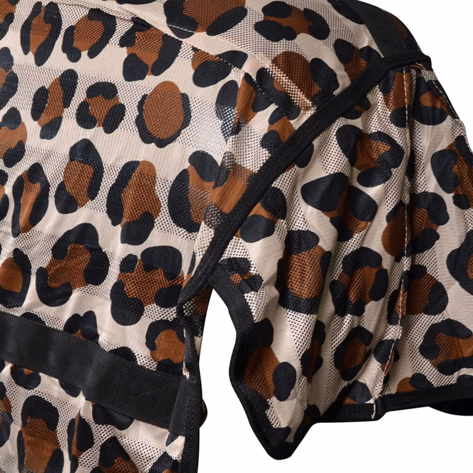 Låt din häst sticka ut i sommar med detta stilfulla flugtäcke i ett lekfullt leopardmönster. Tillverkat i luftig 100% polyester mesh som ger effektivt skydd mot irriterande insekter samtidigt som det andas och håller hästen sval under varma dagar.