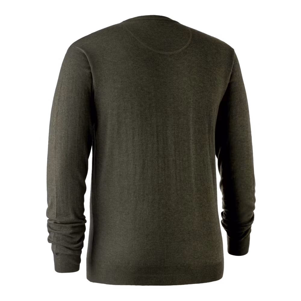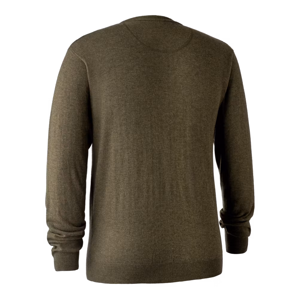 Deerhunter Kingston med rundad hals är en tröja i mjuk merinoullsblandning med snygg stil samt i ett mångsidigt urval av färger. Den passar lika bra för jaktresor som för att piffa upp din kontorsoutfit. Den mjuka merinoullsblandningen känns otroligt skön mot huden och går även att tvätta i maskin.