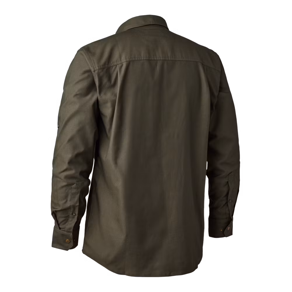 Deerhunter Matobo Skjorta är en klassisk skjorta i bomullsblandning med regenererad polyester har tvåvägsstretchtyg och veck på ryggen för ökad komfort och rörelsefrihet. Jaktskjortan är lika praktisk som snygg, med två olika typer av bröstfickor, dold knappkrage och remmar som håller ärmarna på plats.