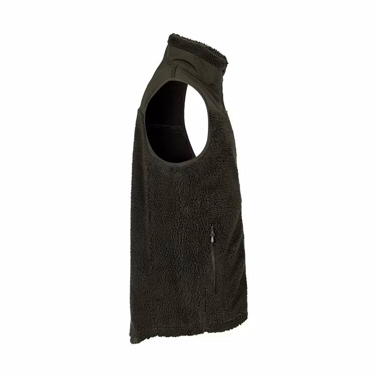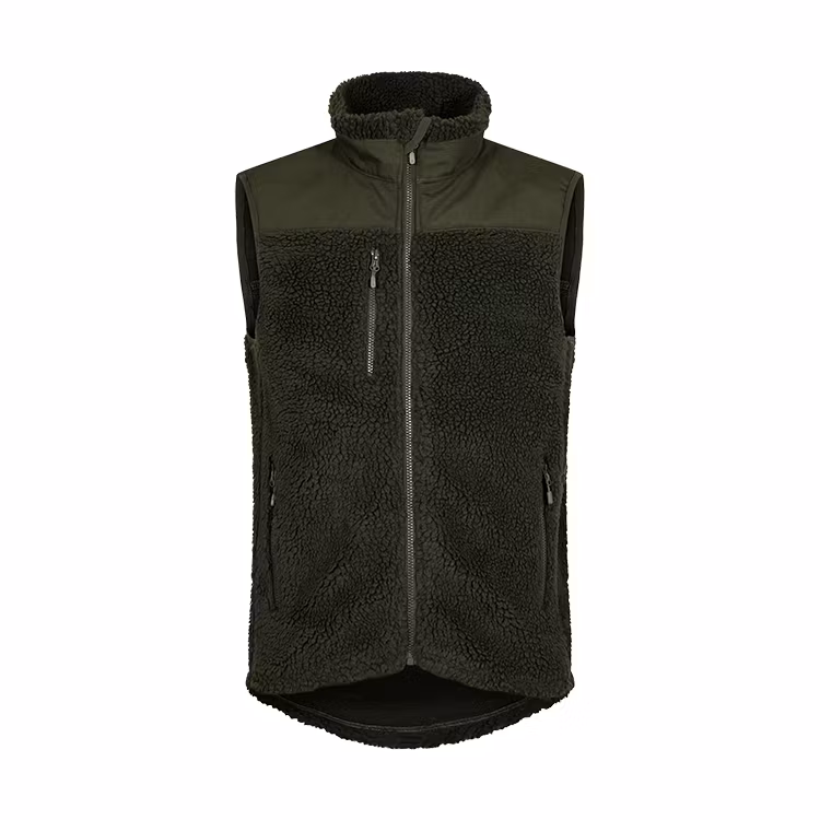 Matterhorns Sherpa fleeceväst i återvunnen polyester. Avvikande material i polyester/bomull på skulderpartiet. Två sidfickor och en bröstficka samt elastiska armhålor.