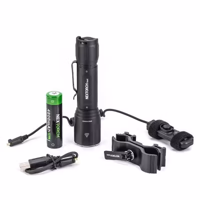 TA41-KIT innehåller TA41 ficklampan, RM85-fäste, TS4-L fjärrtryckbrytare samt ett 21700 batteri. TA41-Jaktset har en slagtåliget på 2m, vattentät upp till 2m varav den passar bra till jakten. Lampan har en maxeffekt på 2600 lumen, tre ljusstyrkor, strobläge och SOS-läge.